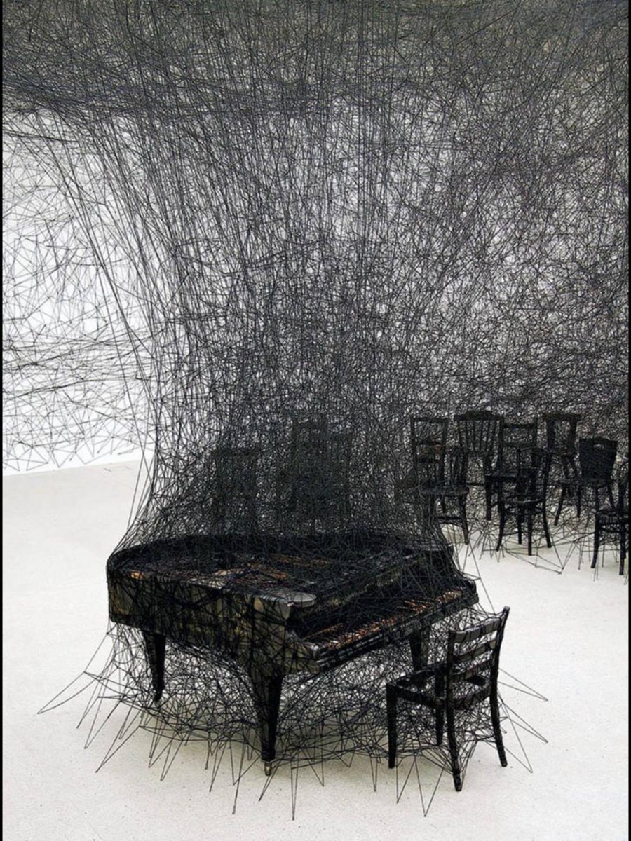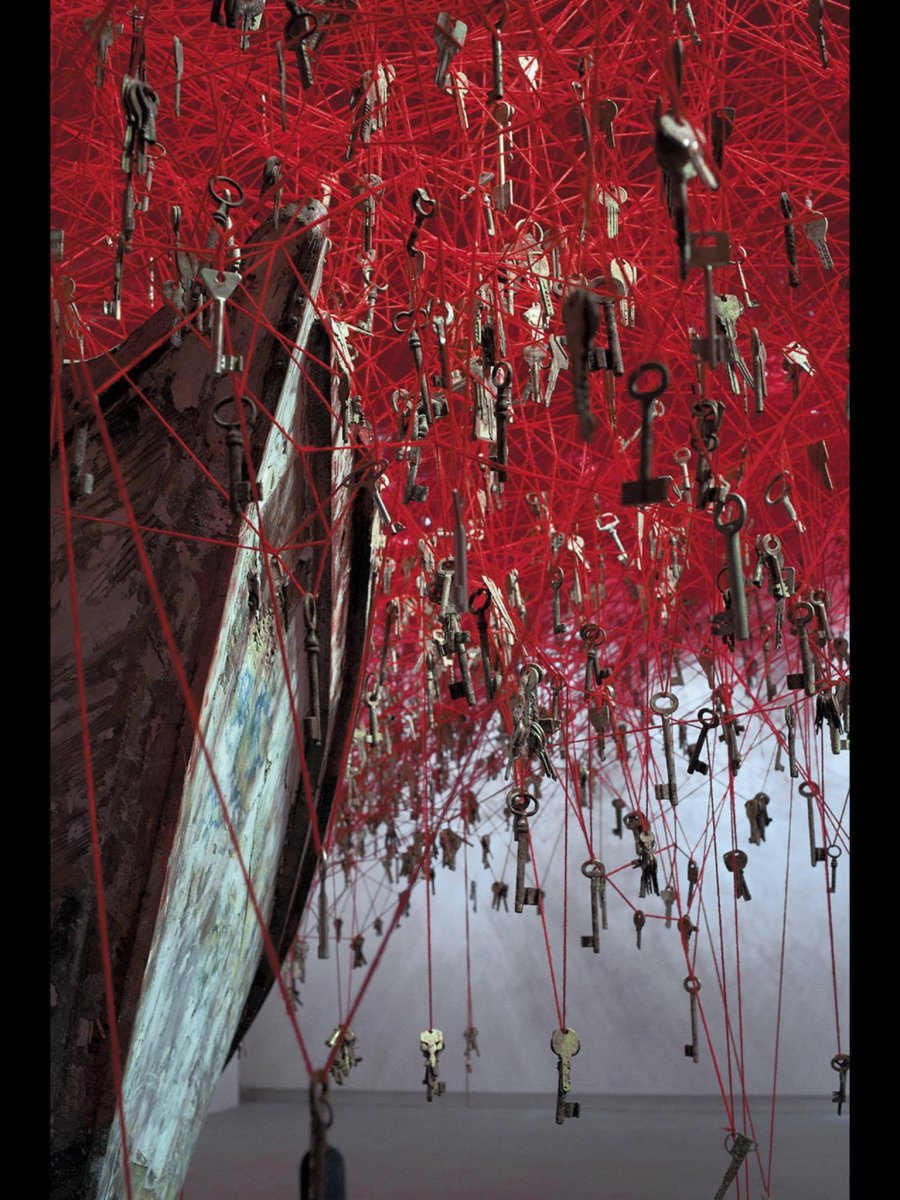 "Chiharu Shiota weaves an inmersive labyrinth of keys and yarn"."http://www.designboom.com/art/chiharu-shiota-venice-art-biennale-the-key-in-the-hand-05-06-2015/