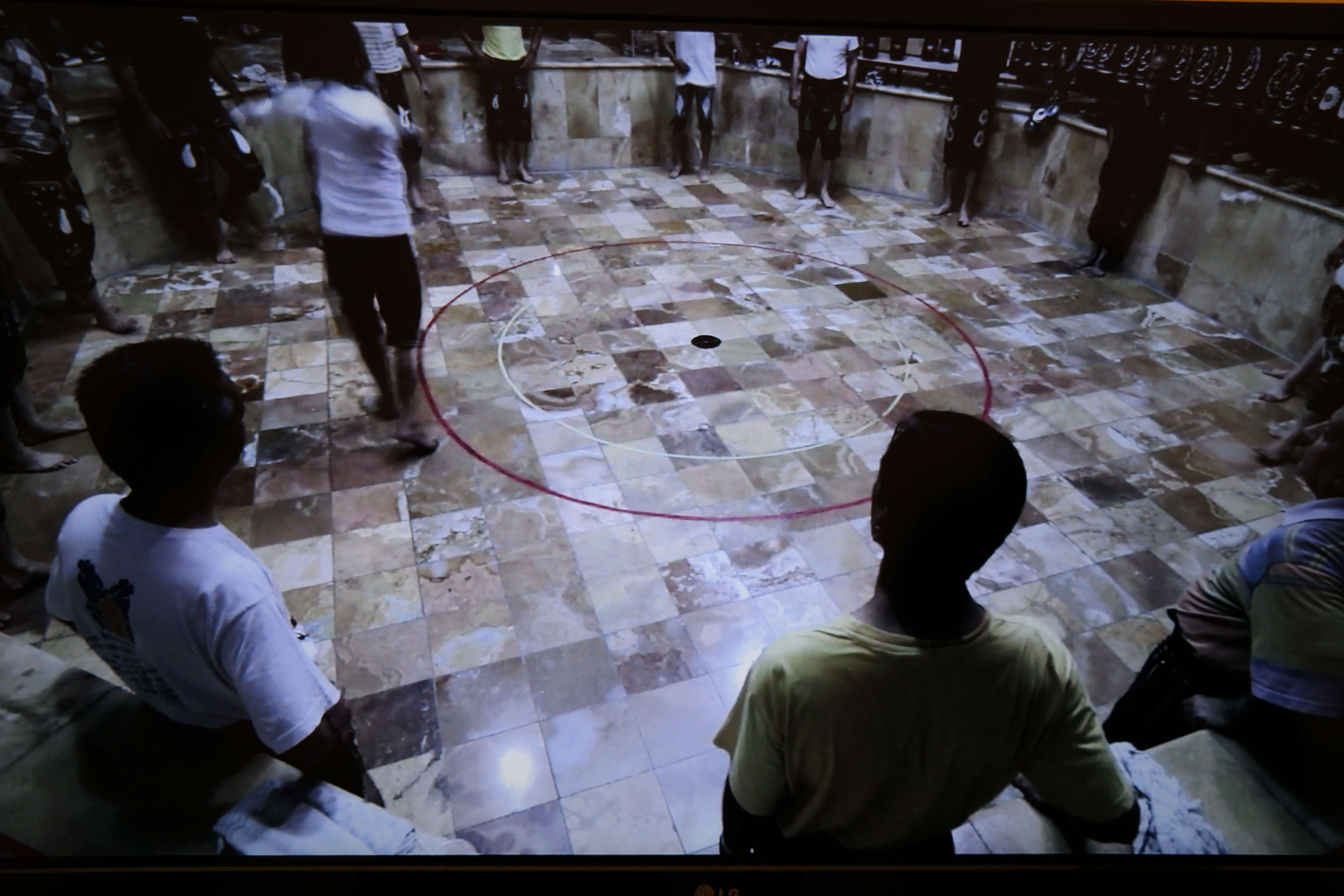 The normal actions are transcended by exaggeration . The artist stresses the existence of a useless , tiring action by making it even more extenuating.