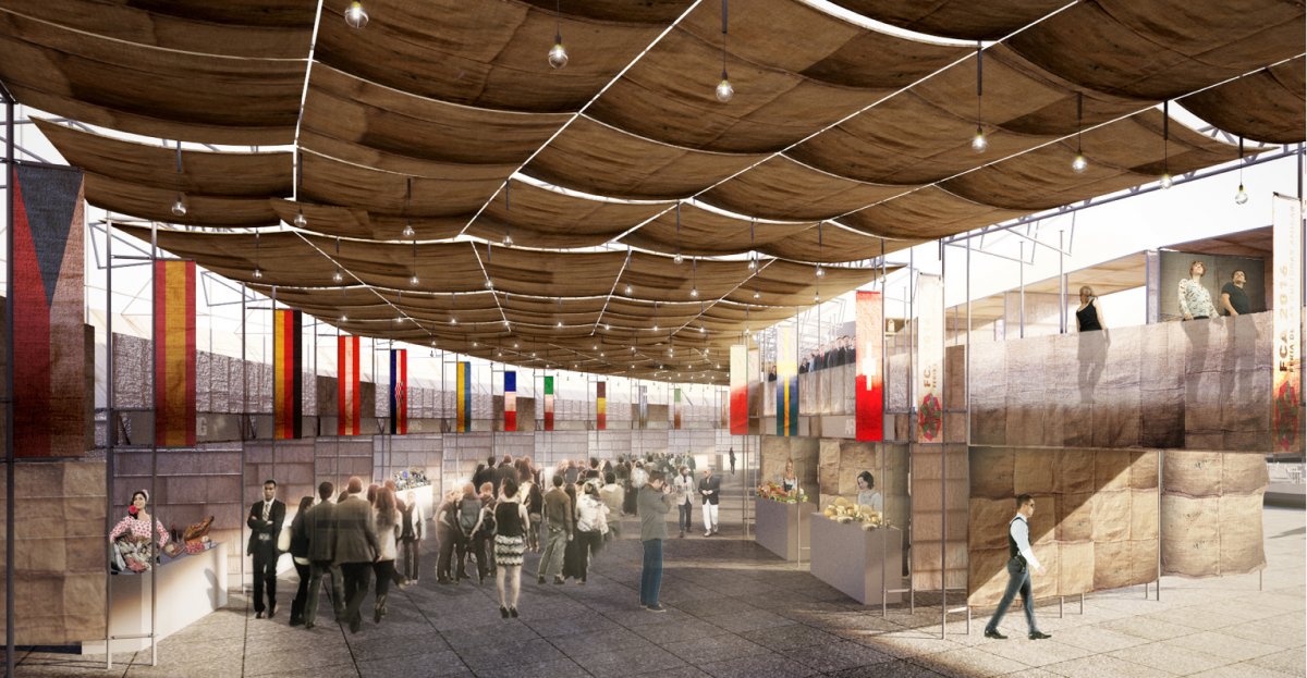 I find this proposal as a succesful way of dealing with public events, that even though crowded, gave the sense of intimacy. I found the use of materials quite ecofriendy, and visually appealing . I may experiment with hemp fabrics for this project.