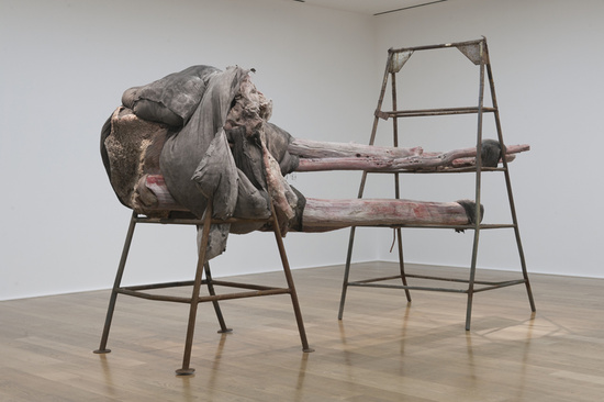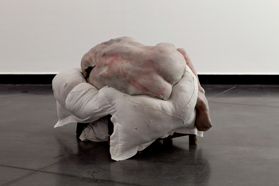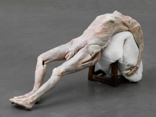 I relate her works to my previous thoughts on death and the privacy given to the corpses. Her soulless bodies normally fall on a unstable ground, as if they were victims of a dense gravity. The partial hiding of the shapes also create a sense of mystery and uneasiness that make her pieces both passive but metaphorically threatening.