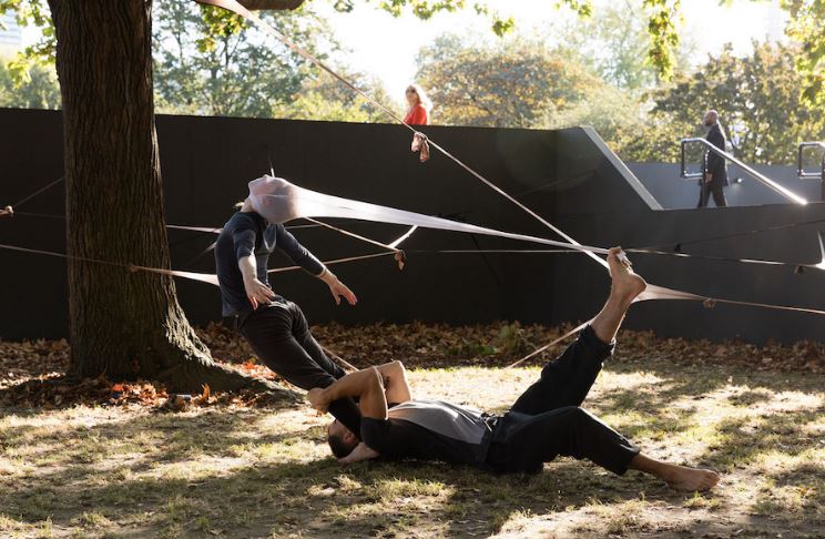 "Frenetic Gossamer" is one of the first pieces in which the artist involve a performative element.The elasticity becomes not only essential and repetitive, but also has a sense of change and variability which I personally adore. It is a piece that can hardly be understood when is not experience in real time, but I can grasp an idea on the changing and the dedication towards a smooth flowing rhythm.